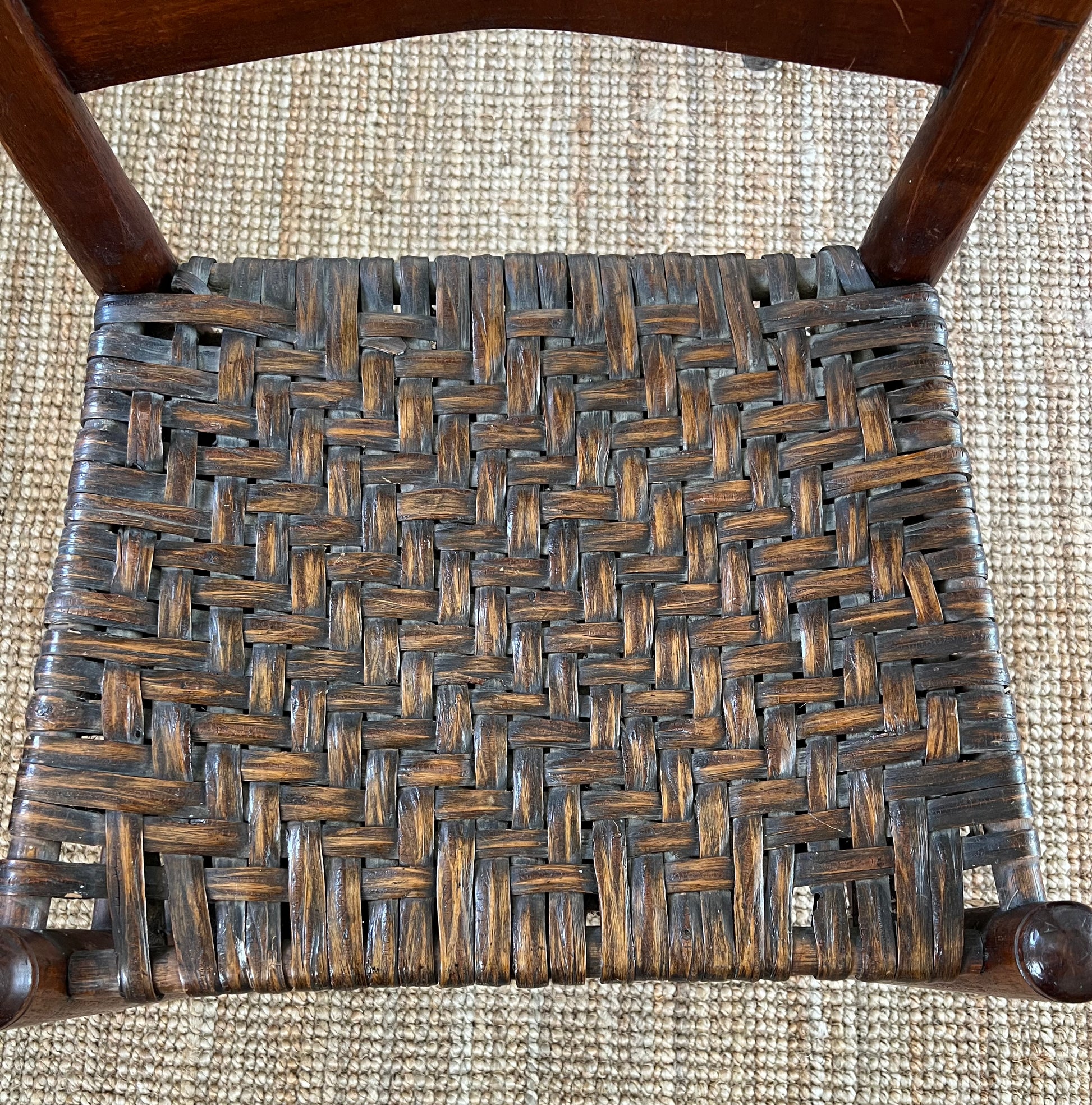 Antique, farmhouse woven seat ladder back chair, dark wood. In great condition.